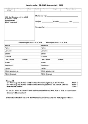 Hier finden Sie alle Unterlagen zur 32. MSC Stormarnfahrt am 31. Oktober 2025 | |